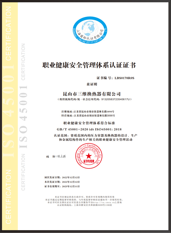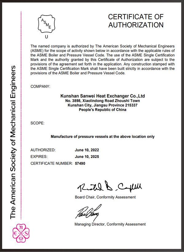A2壓力容器制造許可證,D1/D2壓力容器設計許可證;GC2管道安裝許可證;ASME U/NB鋼印;ISO9001、ISO45001、ISO14001體系認證證書等。
